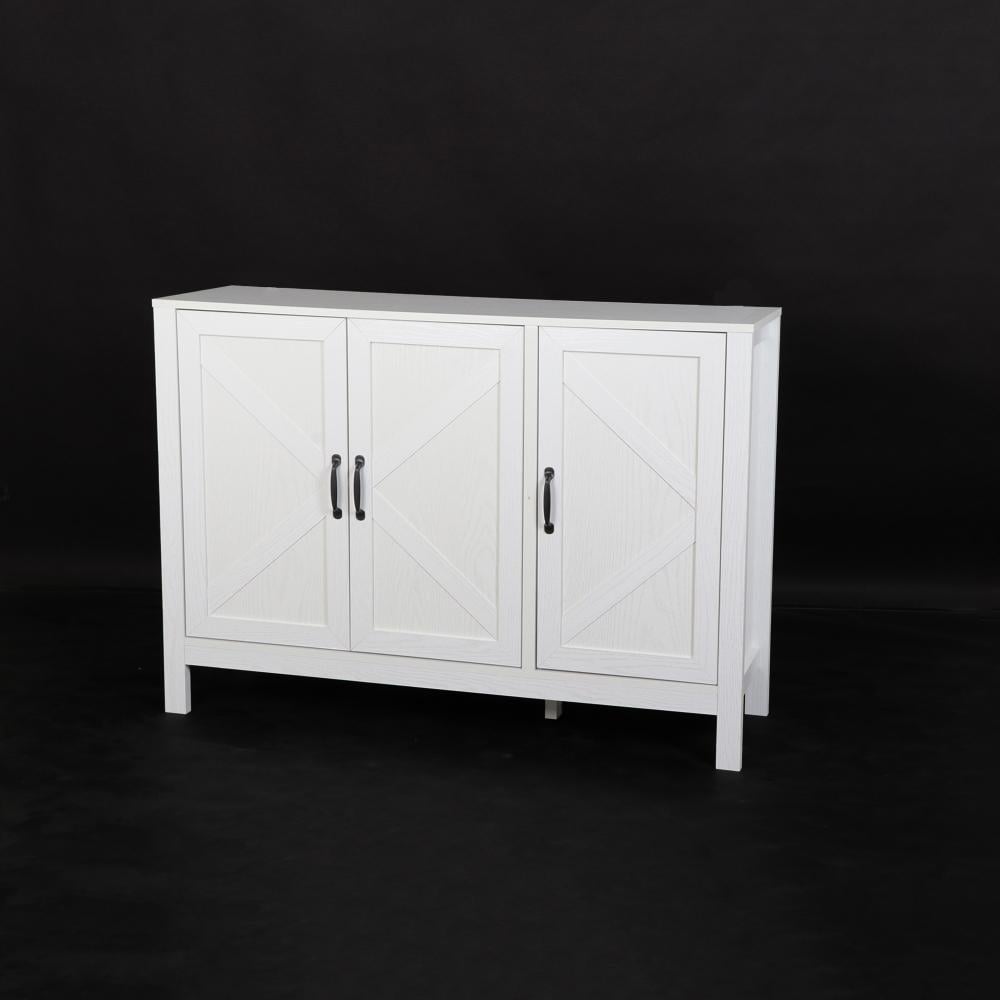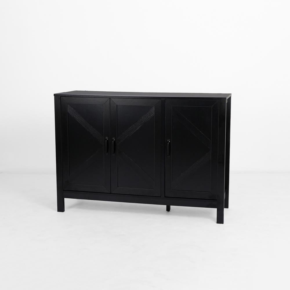 يتوفر البوفيه بألوان كلاسيكية جذابة؛ الأسود والأبيض، مما يمنحه تنوعًا ليناسب مختلف أنماط الديكور. التصميم يحتوي على برواز جميل يعزز من جاذبية مظهره الخارجي ويضيف لمسة عصرية. الأبواب الأربعة مزودة بمقابض بلون داكن، مما يضيف تباينًا جميلًا ويجعل من السهل فتحها وإغلاقها.