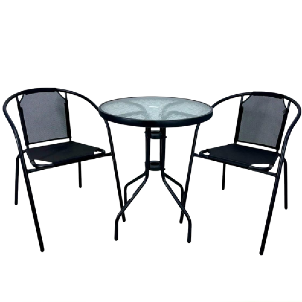 طقم أثاث خارجي من متجر اثاث بوتيك بتصميم عصري وبسيط يتناسب مع مختلف الأذواق. تتكون من طاولة دائرية صغيرة وكراسي مريحة، مما يجعلها مثالية للاستخدام في المساحات الصغيرة مثل الشرفات أو الحدائق. الإطار المعدني القوي مع القماش المشبك يعطيها مظهراً عصريًا ومناسبًا للاستخدام الخارجي.