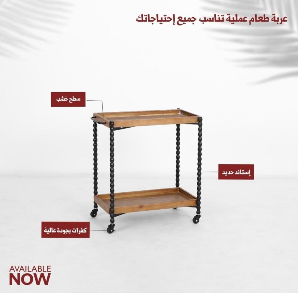 - تأتي عربة التقديم بتصميم جذاب يجمع بين البساطة والفخامة، ما يجعلها تتناسب مع مختلف أنماط الديكور من الكلاسيكي إلى العصري. بفضل ألوانها الطبيعية، ستضفي لمسة دافئة على أي مكان توضع فيه.