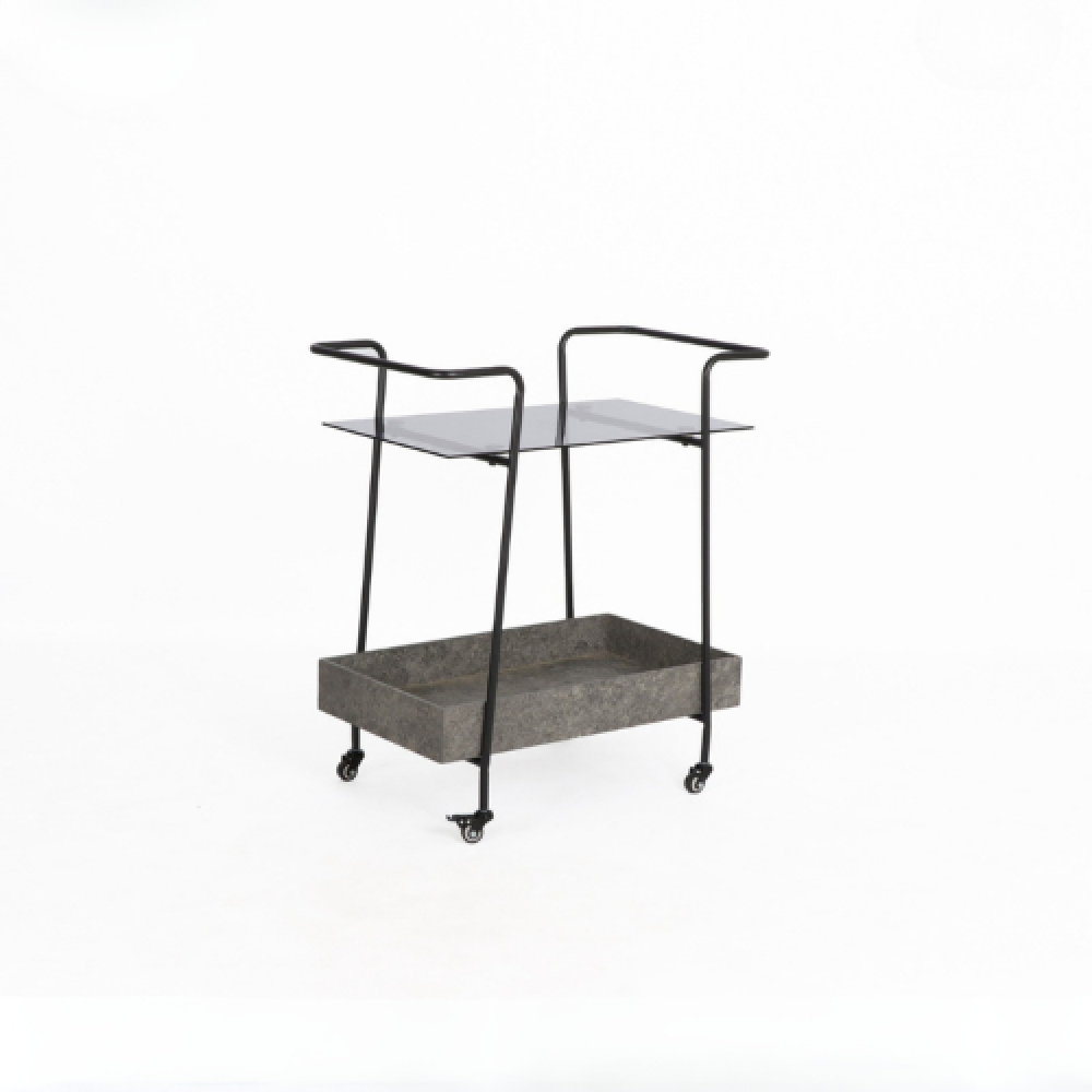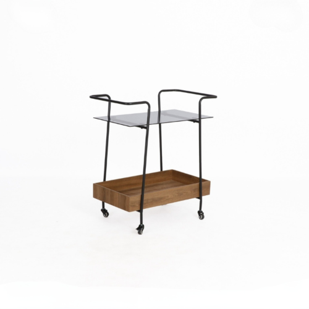 عربة تقديم خشب وحديد بسطح زجاجي