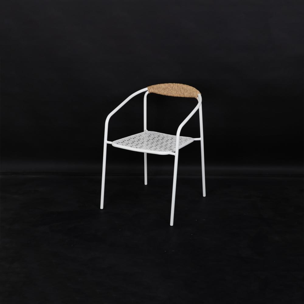 • تصميم فريد يجمع بين الحديد والحبل القش.