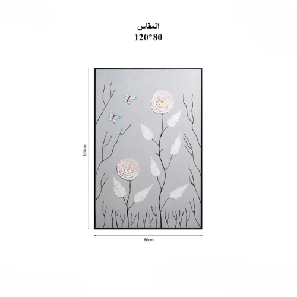 ارتقِ بجدران منزلك أو مكتبك مع هذه اللوحة الفنية التي تنبض بالحياة من خلال تفاصيلها الدقيقة وتصميمها الناعم. تتميز هذه اللوحة بأزهار ثلاثية الأبعاد متفتحة، محاطة بأوراق بيضاء متناثرة، تكمّلها فراشتان بألوان هادئة تحلقان بخفة في الأفق الرمادي.