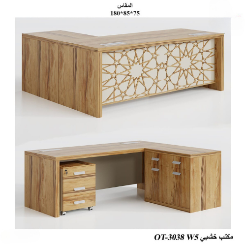• مكتب خشب منقش مستطيل مقاسين و زاوية 3 مقاسات
